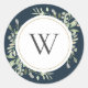 Com delicadas folhas de verde em aquarela sobre um fundo azul-marinho, este adesivo botânico elegante pode ser personalizado com o seu monograma inicial. Perfeito para casamentos, chá de noiva, chá de bebê, batizados, festas de noivado, celebrações de aniversário, formaturas, encontros de aniversário e outros eventos especiais ao longo do ano! Criado por Thisisnotme