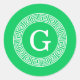 Adesivo Redondo Monograma inicial do Quadro chave grego Emerald Wh