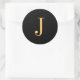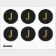 Adesivo Redondo Monograma J dourado sobre fundo preto