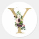 Adesivo Redondo MONOGRAMA letra dourada flores boho burgundy Cla