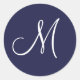 Adesivo Redondo Monograma M Branco em Azul Marinho,