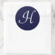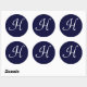 Adesivo Redondo Monograma marinho Azul e Branco Monograma Selo ini
