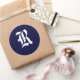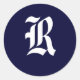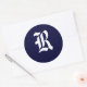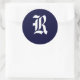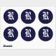 Adesivo Redondo Monograma marinho Azul e Branco Selos Iniciais "R"