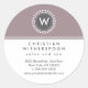 Um design moderno limpo que pode funcionar para muitos tipos de negócios, incluindo um salão, massagista, nutricionista, especialista em bem-estar, loja de varejo ou grossista. O seu monograma está no topo de um ornamento moderno contra a mauve. Excelente adesivo do promocional para uso como envelope ou selagem de encapsulamento ou uso em compras ou faturas de clientes. Disponível em cores alternativas com produtos correspondentes.