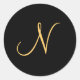 Adesivo Redondo Monograma N, cor dourada inicial N a preto,