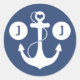 Adesivo Redondo Monograma Náutico Branco e Azul-marinho