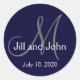 Monograma marinho Azul, Branco e Cinza, Noiva e noiva, Data Casamento Favor Sticker por Elke Clarke ©.