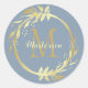 Adesivo Redondo Monograma Nome Dourado Dusty Blue Wreath