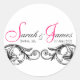 Adesivo Redondo Monograma Nomes Data Local Vinhetas de Casamento