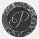Adesivo Redondo Monograma P Prata e Casamento tema damasco preta