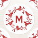 Uma coroa de pássaros vermelhos e bagas escandinavos em volta de um monograma inicial. Arte original de Nic Squirrell. Mude o monograma para personalizar.