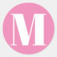 Adesivo Redondo Monograma personalizado cor-de-rosa branco