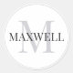Adesivo Redondo Monograma Personalizado de Cinzas Negra Minimalist