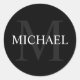 O Monograma Personalizado e o Name Sticker apresenta o nome personalizado em branco e monograma na cinza como fundo, no estilo de letra serif clássico, em fundo preto. Perfeito para feriado, reagrupamento familiar e quaisquer ocasiões especiais.