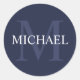 Adesivo Redondo Monograma personalizado e Marinho de nome azul