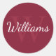 Adesivo Redondo Monograma Personalizado e Nome Vermelho Borgonha