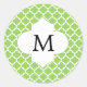 Adesivo Redondo Monograma Personalizado Verde Quatrefoil e Branco