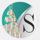 Adesivo Redondo Monograma Prata, Dourado e Teal Feliz Natal