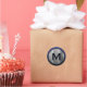 Adesivo Redondo Monograma Prateado Escovado Azul Marinho