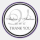 Adesivo Redondo Monograma preto roxo V Casamento Obrigado