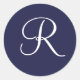 Adesivo Redondo Monograma R, Branco sobre Marinho Azul,