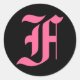Escolha sua inicial em gótica, letras antigas em inglês em um esquema retrorreflector cor-de-rosa e preto.