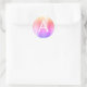 Adesivo Redondo Monograma Roxo e Rosa Girassol
