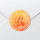 Dica: Se necessário, adicione espaços entre letras e/ou espaço duplo entre palavras para alcançar esta "aparência". Design de cor d'água laranja clássico que apresenta o seu monograma, nome e endereço numa etiqueta de endereço redondo de retorno.