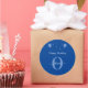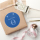 Adesivo Redondo Monograma Script Feliz Aniversário Azul E Branco