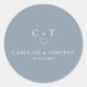 Estes adesivos redondos apresentam texto simples com iniciais e um tema de cor azul empoeirado. Todo texto pode ser personalizado para criar os adesivos personalizados perfeitos para o dia do seu casamento. Visite minha coleção de casamento azul empoeirada minimalista para ver todos os itens coordenadores. #dustybluecasamento #personweddingstickers