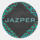 Adesivo Redondo Monograma Teal e Brown Leopardo
