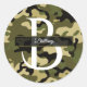 Coloque seus presentes, envelopes ou favoritos para festas com esses adesivos redondos, personalizados monogramas em verde, marrom e padrão de camuflagem bronzeada. O design colorido faz deles um sotaque na moda e divertido para aniversários, casamentos ou comemorações de tendências. Um toque perfeito para qualquer coleção de presentes.