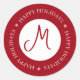 Adesivo Redondo Monograma Vermelho de Flocos de Neve Simplificados