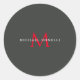 Adesivo Redondo Monograma Vermelho Negro Moderno Monograma Minimal