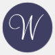 Adesivo Redondo Monograma W, branco sobre azul Marinho,