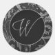 Adesivo Redondo Monograma W Prata e Casamento tema damasco preta