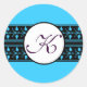 Adesivo Redondo Monograma Wedding Bright Blue Borders