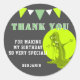Monstro do lodo Obrigado Aniversário do Round Sticker por Crianças / Obrigado Aposta de aniversário para crianças com um monstro de lodo verde assustador e uma obrigado de mensagem. Personalize o adesivo com o nome do seu filho. Altere ou deixe a mensagem do obrigado. Excelente para rapazes ou raparigas que amam lodo e monstros e que têm uma festa de aniversário de lodo.