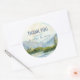 Adesivo Redondo Montanha Lake Watercolor Casamento Obrigado