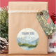 Obrigado de casamento Mountain Lake Watercolor que você cola com noiva e noiva. Clínica cor d'água favorece adesivos em tons de azul empoeirado e verde. A cena do lago apresenta montanhas, verde e pinheiros, o lago e um céu leve. Se você quiser produtos correspondentes, por favor, navegue na minha coleção Mountain Lake.