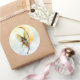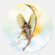 Uma bela fada sentada na lua laranja entre as nuvens espalhando poeira de fada. Disponível em várias cores de fundo para a maioria dos produtos.