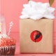 Maio no Mês Nacional de Morango. Design apresenta um morango com chocolate gotejando sobre fundo vermelho.