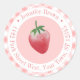 Adesivo Redondo Morango de Verão Rosa e Branco Endereço de Devoluç