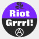 rosa preto, círculo-a, adesivo redondo "motim grrrl!", roxo e preto