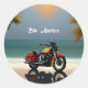 Adesivo Redondo Motocicleta estacionada perto do Oceano