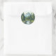 Add a special accent to your envelope or packaging with this mountain landscape watercolor in gteens on a round sticker. Bible verse is created in editable text that you can change. Your choice of sizes and and matte or gloss.