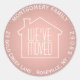 Adicione um toque elegante para mudar os anúncios de endereço e outra correspondência com esses adesivos "Nós movemos" / Eu movi os adesivos redondos. Todo texto pode ser personalizado. Design apresenta um esboço branco simples de uma casa, nome e endereço personalizados em um círculo e fundo de folha de ouro falso-cor-de-na moda. Estas etiquetas são uma forma moderna e chique de apresentar amigos e familiares à sua nova casa. Design simples e minimalista adiciona estilo sofisticado aos convites de festas de aquecimento doméstico, novo endereço/anúncios móveis, cartões de natal para amigos e familiares, casamento, chá de panela ou graduação, obrigado notas, etc. Perfeito também para arquiteto, empreiteiro, designer de interiores, agente imobiliário, decorador de casas, ou qualquer pessoa interessada no comércio de edifícios, design de casas, construção ou arquitetura.