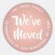 Adicione um toque elegante para trocar cartões de endereço, novos anúncios de endereço e outra correspondência com esses adesivos Nós movemos / movi-me. Todo texto pode ser personalizado. Design apresenta a caligrafia do script de escrita manual do na moda, o nome e endereço personalizados em um círculo e o fundo de folha de papel azul rosa azul. Estas etiquetas são uma forma moderna e chique de apresentar amigos e familiares à sua nova casa. Design simples e minimalista adiciona estilo sofisticado aos convites de festas de aquecimento doméstico, mudamos / movemos anúncios, cartões de natal para amigos e família, casamento, chá de panela ou graduação, obrigado notas, etc.