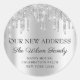 Adesivo Redondo Mudamos RSVP De Cinzas Silver De Endereço