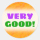 Este design de adesivo apresenta um padrão que consiste em formas laranja tipo blob ou tipo splotch. Também apresenta a mensagem encorajadora "MUITO BOM!" em texto roxo e verde colorido. Os adesivos como estes poderiam talvez ser usados por um professor, um educador ou um professor para reconhecer e motivar um estudante que se saiu bem em um teste, teste, papel, projeto ou em alguma outra tarefa escolar ou acadêmica. [~Z0000118]